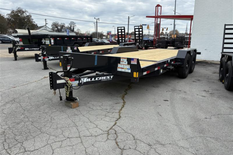 The Hillcrest Trailers 83in x 20ft Tilt Deck Trailer with 14K GVWR and a built-in tongue box offers smooth, drive-on loading and heavy-duty hauling—perfect for transporting equipment, vehicles, and machinery with added storage convenience.