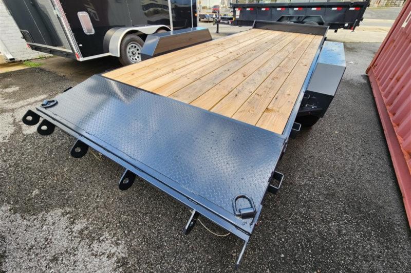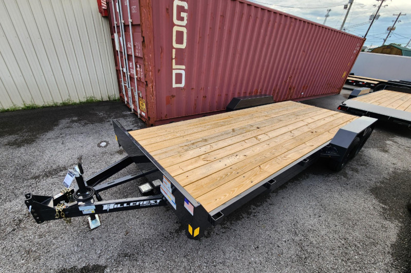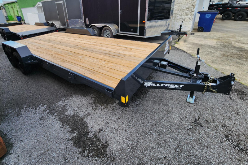 The Hillcrest Trailers 83in x 20ft Tilt Deck Trailer with 10K GVWR and a built-in tongue box offers smooth, drive-on loading and heavy-duty hauling—perfect for transporting equipment, vehicles, and machinery with added storage convenience.